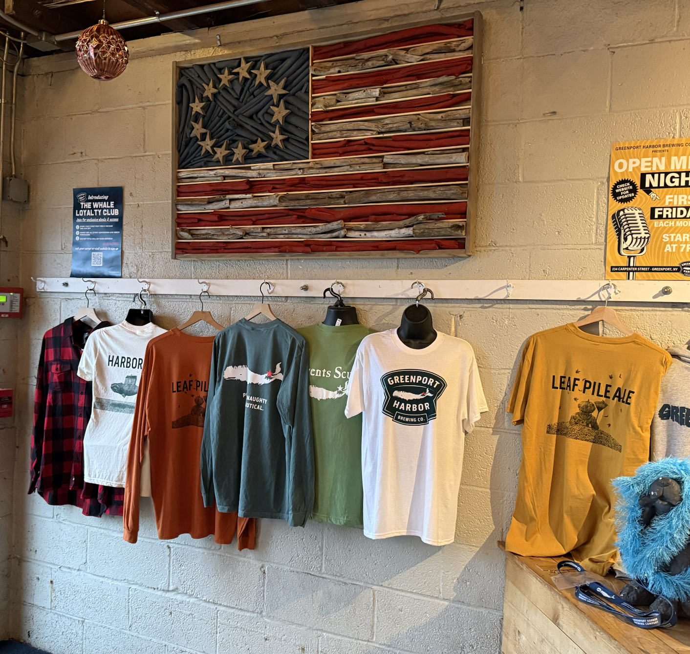 Handcrafted colonial-inspired American flags made from North Fork driftwood.